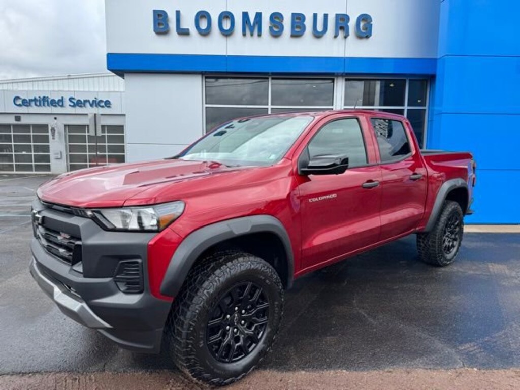 2026 Chevrolet Colorado Trail Boss Radiant Red Tintcoat Adaptive Cruise Control, Apple CarPlay/Android Auto, Auto High-beam Headlights, Brake assist, Forward Collision Alert, HD Surround Vision, Heated Steering Wheel, Lane Keep Assist with Lane Departure Warning, Remote keyless entry, Remote Vehicle Starter System.Get FREE lifetime state inspections when you purchase your vehicle at Chevrolet of Bloomsburg, just pay for the sticker. Every fourth oil change is FREE at Chevy of Bloomsburg! Use your MyChevy rewards for service, parts and accessories. Chevrolet of Bloomsburg is proud to offer this outstanding 2026 Chevrolet Colorado an absolutely superb Truck with the following Features: Preferred Equipment Group 0TR (Forward Collision Alert, Lane Keep Assist with Lane Departure Warning, Automatic Emergency Braking, Chevy Safety Assist, Following Distance Indicator, Front Pedestrian and Bicyclist Braking, and IntelliBeam Automatic High Beam on/Off), Technology Package (Adaptive Cruise Control, HD Surround Vision, and Rear Pedestrian Alert), Trail Boss Convenience Package II (Heated Steering Wheel, Remote Vehicle Starter System, 4-Spoke Wrapped Steering Wheel, 8-Way Power Driver Seat Adjuster, Driver and Front Passenger Heated Seats, Evotex Seat Trim, Power Driver Lumbar Control Seat Adjuster, and Wireless Phone Charging), Apple CarPlay/Android Auto, Auto High-beam Headlights, Brake assist, Remote keyless entry, 1st and 2nd Row All-Weather Floor Liner, 3.42 Rear Axle Ratio, 4-Way Manual Passenger Seat Adjuster, 4-Wheel Disc Brakes, 6 Speakers, 6-Speaker Audio System Feature, 6-Way Manual Driver Seat Adjuster, ABS brakes, Air Conditioning, Alloy wheels, AM/FM radio: SiriusXM with 360L, Automatic temperature control, Black Spray-on Bedliner with Chevrolet Logo, Cloth Seat Trim, Compass, Delay-off headlights, Driver door bin, Driver vanity mirror, Dual front impact airbags, Dual front side impact airbags, Electronic Stability Control, Emergency communication system: OnStar, Front anti-roll bar, Front Bucket Seats, Front Center Armrest, Front dual zone A/C, Front wheel independent suspension, Heated door mirrors, Illuminated entry, Low tire pressure warning, Navigation System, Occupant sensing airbag, Outside temperature display, Overhead airbag, Overhead console, Panic alarm, Passenger door bin, Passenger vanity mirror, Power door mirrors, Power steering, Power windows, Radio data system, Radio: 11.3 Diagonal Advanced Color LCD Display, Rear reading lights, Rear step bumper, Rear window defroster, Security system, SiriusXM with 360L Trial Subscription, Speed control, Speed-sensing steering, Split folding rear seat, Steering Wheel Mounted Audio Controls, Steering wheel mounted audio controls, Tachometer, Tilt steering wheel, Traction control, Trip computer, Variably intermittent wipers, Wheels: 18 x 8.5 Black High Gloss Aluminum, and Wireless Phone Projection.
