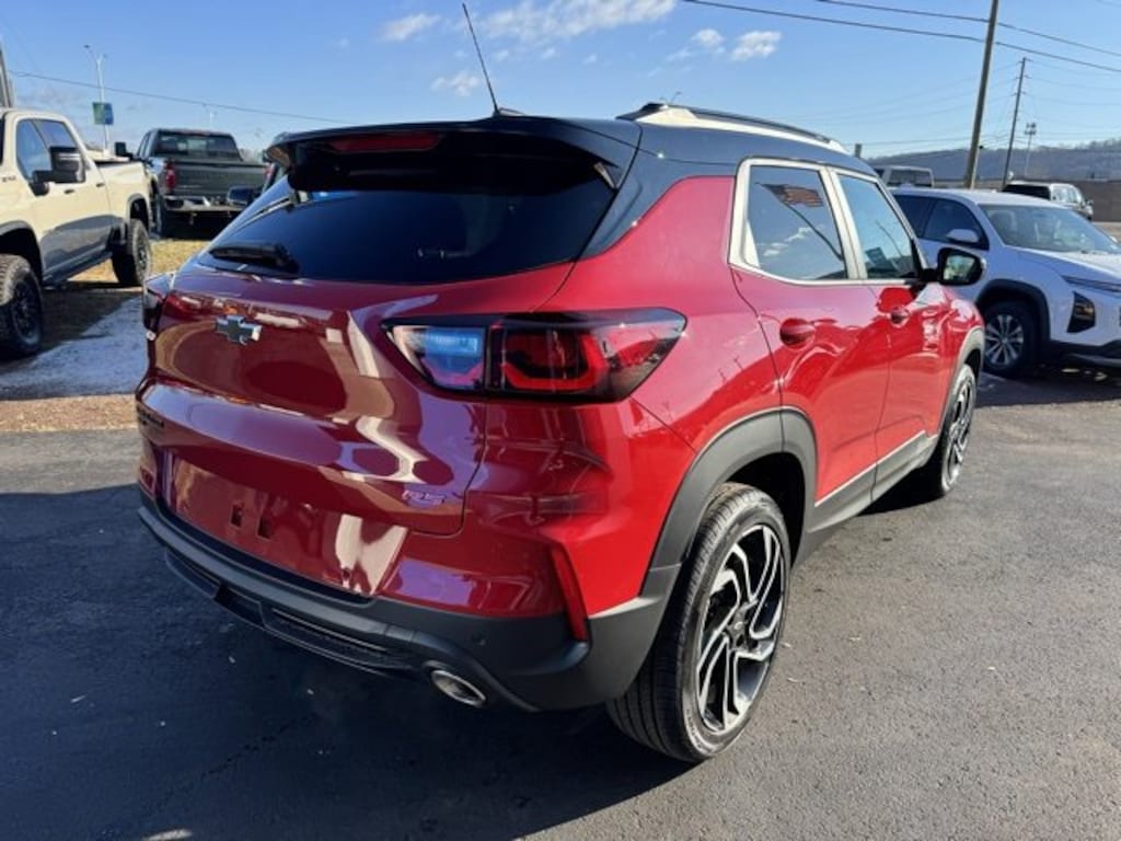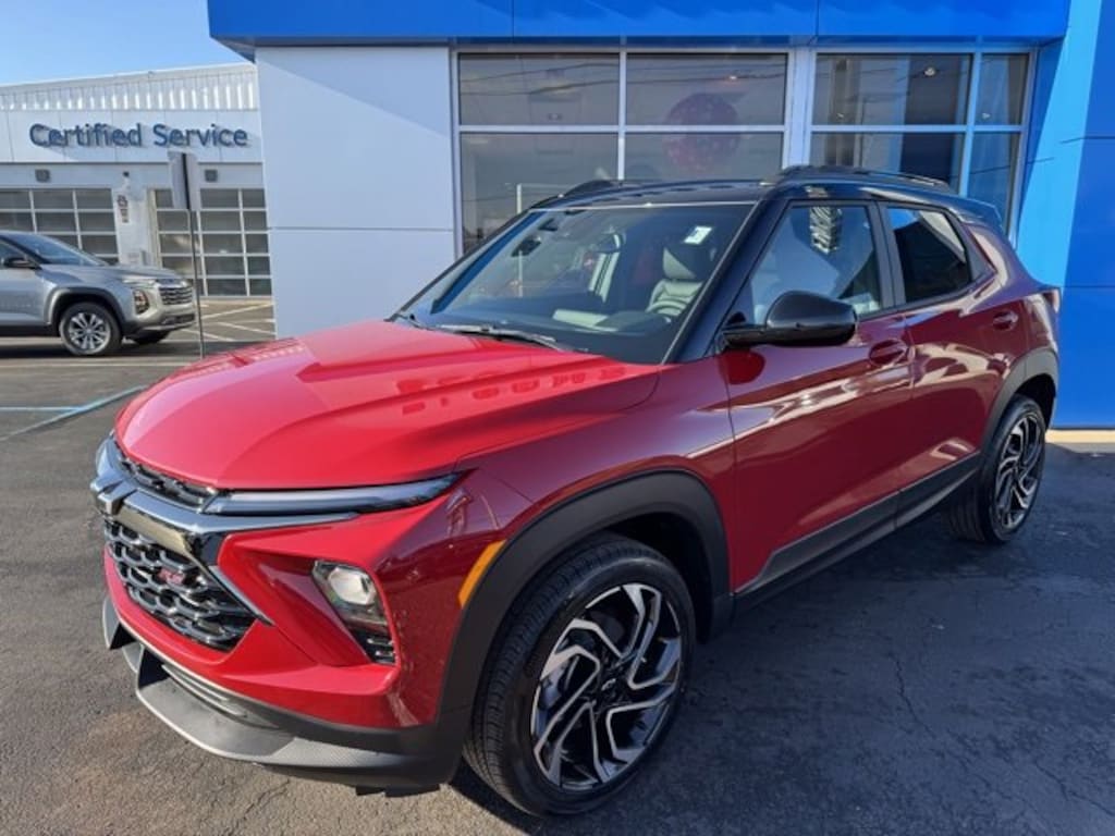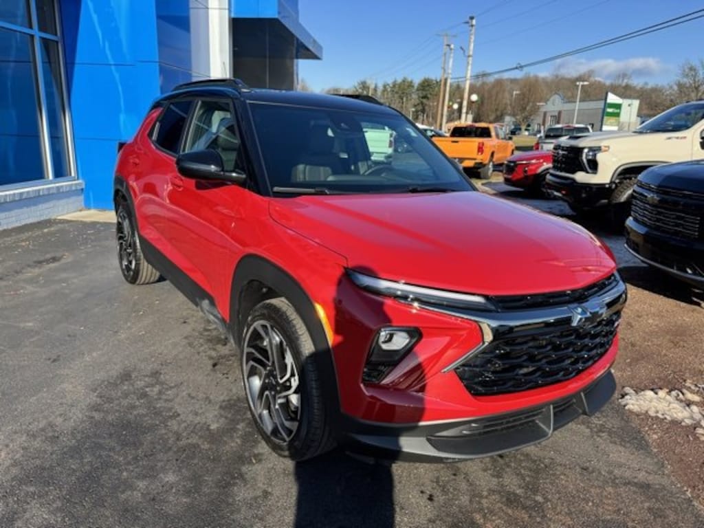 2026 Chevrolet TrailBlazer RS Apex Red 120-Volt Power Outlet, Exterior Parking Camera Rear, Fully automatic headlights, Hands Free Power Programmable Liftgate, Heated door mirrors, Heated Driver and Front Passenger Seats, Lane Change Alert with Side Blind Zone Alert, Remote keyless entry, Speed control, Wireless Apple CarPlay/Android Auto. 26/29 City/Highway MPGGet FREE lifetime state inspections when you purchase your vehicle at Chevrolet of Bloomsburg, just pay for the sticker. Every fourth oil change is FREE at Chevy of Bloomsburg! Use your MyChevy rewards for service, parts and accessories. Chevrolet of Bloomsburg is proud to offer this attractive 2026 Chevrolet TrailBlazer an absolutely fantastic SUV with the following Features: Convenience Package (120-Volt Power Outlet, Hands Free Power Programmable Liftgate, 1 Type-An and 1 Type-C USB Charging-Only Ports, Cabin Humidity Sensor, Driver and Front Passenger Illuminated Vanity Mirrors, Inside Rear-View Auto-Dimming Mirror, Single-Zone Automatic Climate Control, and Wireless Charging), Driver Confidence Package (Lane Change Alert with Side Blind Zone Alert, Rear Cross Traffic Alert, and Rear Park Assist), Exterior Parking Camera Rear, Fully automatic headlights, Heated door mirrors, Heated Driver and Front Passenger Seats, Remote keyless entry, Speed control, Wireless Apple CarPlay/Android Auto, 1 Type-An and 1 Type-C USB Ports, 2-Way Power Driver Lumbar Seat Adjuster, 3.17 Final Drive Axle Ratio, 4-Way Manual Front Passenger Seat Adjuster, 4-Wheel Disc Brakes, 6 Speakers, 6-Speaker Audio System Feature with Amplifier, 8-Way Power Driver Seat Adjuster, ABS brakes, Air Conditioning, Alloy wheels, AM/FM radio: SiriusXM, Auto High-beam Headlights, Brake assist, Bumpers: body-color, Compass, Delay-off headlights, Driver door bin, Driver vanity mirror, Dual front impact airbags, Dual front side impact airbags, Electronic Stability Control, Emergency communication system: OnStar and Chevrolet connected services capable, Evotex Seat Trim, Flat-Folding Front Passenger Seatback, Front anti-roll bar, Front Bucket Seats, Front Center Armrest, Front reading lights, Front wheel independent suspension, Heated front seats, Heated steering wheel, Illuminated entry, Knee airbag, Low tire pressure warning, Occupant sensing airbag, Overhead airbag, Overhead console, Panic alarm, Passenger door bin, Passenger vanity mirror, Power door mirrors, Power driver seat, Power steering, Power windows, Radio data system, Radio: AM/FM Stereo Audio System, Rear seat center armrest, Rear side impact airbag, Rear window defroster, Rear window wiper, Ride and Handling Suspension, Security system, SiriusXM Trial Subscription, Split folding rear seat, Spoiler, Steering wheel mounted audio controls, Tachometer, Telescoping steering wheel, Tilt steering wheel, Traction control, Trip computer, Variably intermittent wipers, and Wheels: 19 High Gloss Black Machined Aluminum.