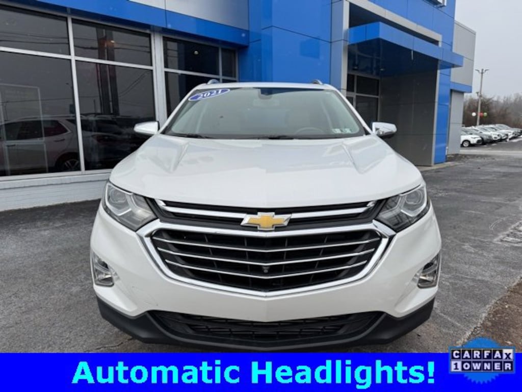* 2021 IIHS Top Safety Pick with specific headlights Chevrolet of Bloomsburg is proud to offer this good-looking 2021 Chevrolet Equinox an absolutely good-looking SUV with the following Features: Confidence & Convenience II Package, Driver Confidence III Package (Adaptive Cruise Control, HD Surround Vision, and Safety Alert Seat), Driver Convenience II Package (8-Way Power Front Passenger Seat Adjuster, Heated Rear Seats, Heated Steering Wheel, Ventilated Driver Seat, and Ventilated Front Passenger Seat), Infotainment II Package (Bose Premium 7-Speaker Audio System Feature, HD Radio, and Radio: Chevrolet Infotainment 3 Premium System), Preferred Equipment Group 1LZ, 8-Way Power Driver Seat Adjuster, Apple CarPlay/Android Auto, Bluetooth® For Phone, Brake assist, Fully automatic headlights, Heated door mirrors, Heated Driver & Front Passenger Seats, Heated front seats, Power door mirrors, Power Liftgate, Power Sunroof, Remote keyless entry, Steering wheel mounted audio controls, 18 Aluminum Wheels, 2 Rear USB Charging-Only Ports, 2 USB Data Ports, 2 USB Data Ports w/SD Card Reader, 2-Way Power Driver Lumbar Control Seat Adjuster, 3.87 Final Drive Axle Ratio, 4-Wheel Disc Brakes, 6 Speaker Audio System Feature, 6 Speakers, ABS brakes, Air Conditioning, Alloy wheels, AM/FM radio: SiriusXM, Auto High-beam Headlights, Auto-dimming door mirrors, Auto-dimming Rear-View mirror, Automatic temperature control, Bumpers: body-color, Compass, Delay-off headlights, Driver door bin, Driver vanity mirror, Dual front impact airbags, Dual front side impact airbags, Electronic Stability Control, Emergency communication system: OnStar and Chevrolet connected services capable, Four wheel independent suspension, Front anti-roll bar, Front Bucket Seats, Front Center Armrest, Front dual zone A/C, Front fog lights, Front Passenger 4-Way Manual Seat Adjuster, Front reading lights, Garage door transmitter, Illuminated entry, Low tire pressure warning, Memory seat, Occupant sensing airbag, Outside temperature display, Overhead airbag, Overhead console, Panic alarm, Passenger door bin, Passenger vanity mirror, Perforated Leather-Appointed Seat Trim, Power driver seat, Power steering, Power windows, Premium audio system: Chevrolet Infotainment 3 Plus, Radio data system, Radio: Chevrolet Infotainment 3 Plus System, Rear anti-roll bar, Rear reading lights, Rear seat center armrest, Rear window defroster, Rear window wiper, Roof rack: rails only, Security system, SiriusXM Radio, Speed control, Speed-sensing steering, Split folding rear seat, Spoiler, Tachometer, Telescoping steering wheel, Tilt steering wheel, Traction control, Trip computer, Turn signal indicator mirrors, Variably intermittent wipers, and Wheels: 19 Bright Machined.