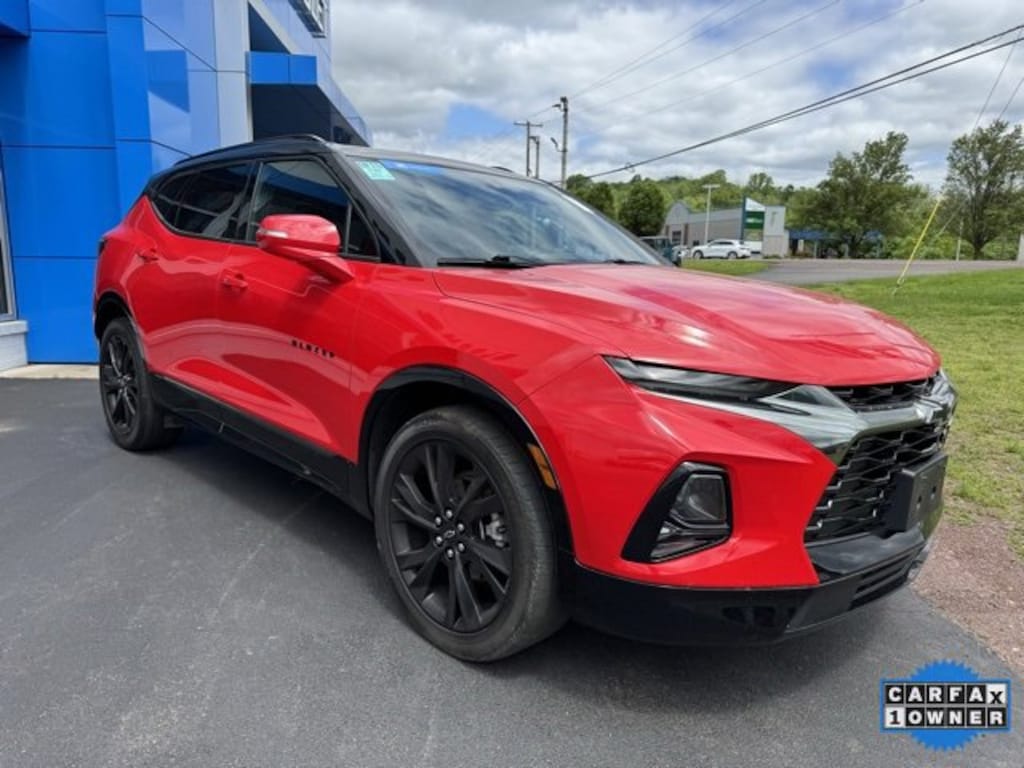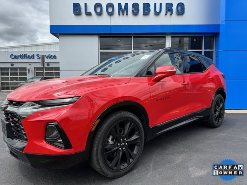Apple CarPlay/Android Auto, Auto High-beam Headlights, Brake assist, Exterior Parking Camera Rear, Fully automatic headlights, Heated door mirrors, Heated Driver & Front Passenger Seats, Heated front seats, Heated Steering Wheel, Not Equipped w/Driver & Fr Passenger Heated Seats, Power Liftgate, Power Panoramic Tilt-Sliding Sunroof, Remote keyless entry, Speed control. Odometer is 3639 miles below market average! 19/26 City/Highway MPG 2022 Chevrolet Blazer RSCARFAX One-Owner.Get FREE lifetime state inspections when you purchase your vehicle at Chevrolet of Bloomsburg, just pay for the sticker. Every fourth oil change is FREE at Chevy of Bloomsburg! Use your MyChevy rewards for service, parts and accessories.Chevrolet of Bloomsburg is proud to offer this outstanding 2022 Chevrolet Blazer a truly good-looking SUV with the following Features: Preferred Equipment Group 1RS (Heated Driver & Front Passenger Seats and Heated Steering Wheel), Apple CarPlay/Android Auto, Auto High-beam Headlights, Brake assist, Exterior Parking Camera Rear, Fully automatic headlights, Heated door mirrors, Heated front seats, Not Equipped w/Driver & Fr Passenger Heated Seats, Power Liftgate, Power Panoramic Tilt-Sliding Sunroof, Remote keyless entry, Speed control, 3.49 Final Drive Axle Ratio, 4-Wheel Disc Brakes, 6 Speakers, 6-Speaker Audio System Feature, 6-Way Power Front Passenger Seat Adjuster, ABS brakes, Air Conditioning, Alloy wheels, AM/FM radio: SiriusXM with 360L, Auto-dimming door mirrors, Auto-dimming Rear-View mirror, Automatic temperature control, Black 2-Tone Roof, Bumpers: body-color, Child-Seat-Sensing Airbag, Compass, Delay-off headlights, Driver door bin, Driver vanity mirror, Dual front impact airbags, Dual front side impact airbags, Electronic Stability Control, Emergency communication system: OnStar and Chevrolet connected services capable, Four wheel independent suspension, Front anti-roll bar, Front Bucket Seats, Front Center Armrest, Front dual zone A/C, Front reading lights, Garage door transmitter, Heated steering wheel, High-Intensity Discharge Headlights, Illuminated entry, Knee airbag, Leather Shift Knob, Low tire pressure warning, Navigation System, Not Equipped w/Heated Steering Wheel, Not Equipped w/Rear Park Assist, Occupant sensing airbag, Outside temperature display, Overhead airbag, Overhead console, Panic alarm, Passenger door bin, Passenger vanity mirror, Perforated Leather-Appointed Seat Trim, Power door mirrors, Power driver seat, Power passenger seat, Power steering, Power windows, Radio data system, Radio: Chevrolet Infotainment 3 Plus System, Rear anti-roll bar, Rear reading lights, Rear seat center armrest, Rear window defroster, Rear window wiper, Ride & Handling Suspension, Security system, SiriusXM w/360L, Speed-sensing steering, Split folding rear seat, Spoiler, Steering wheel mounted audio controls, Tachometer, Telescoping steering wheel, Tilt steering wheel, Traction control, Trip computer, Turn signal indicator mirrors, Variably intermittent wipers, Voltmeter, Wheels: 20 Dark Android Machined-Face Aluminum, and Wheels: 21 Gloss Black Aluminum.