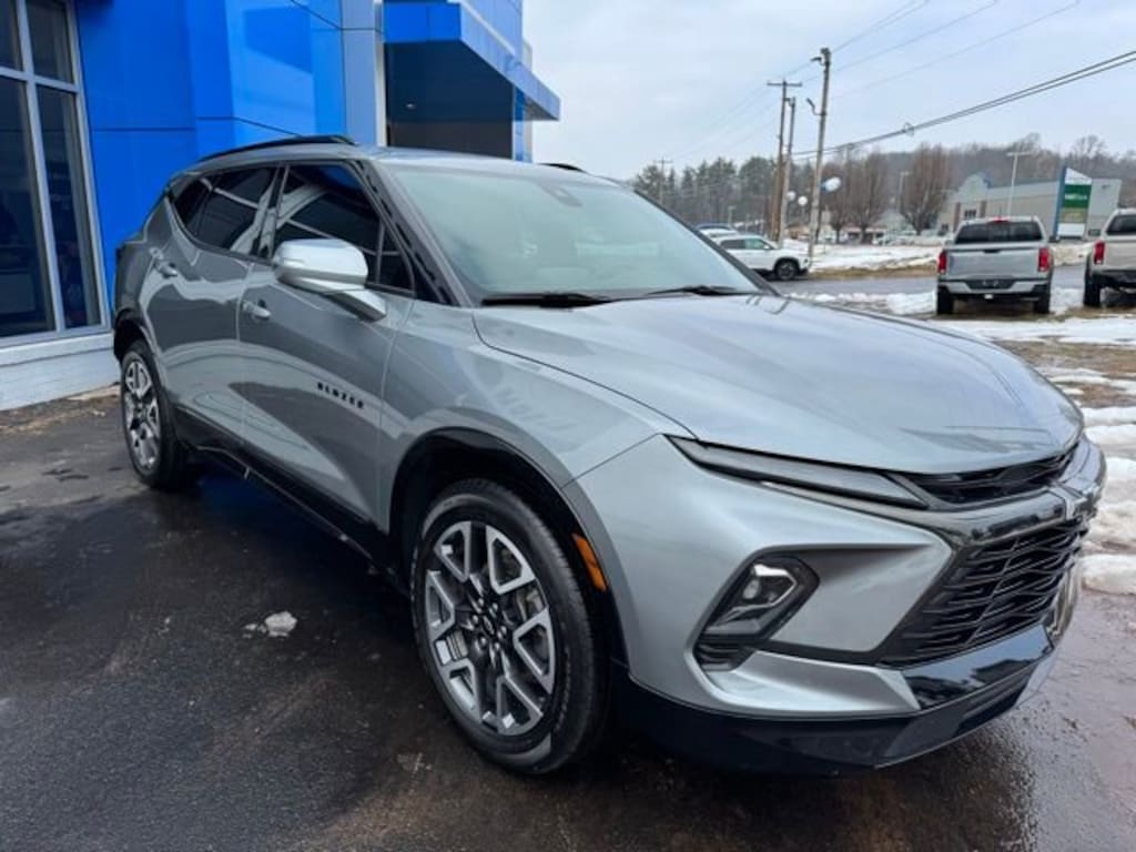 Chevrolet of Bloomsburg is proud to offer this gorgeous 2024 Chevrolet Blazer a positively stunning SUV with the following Features: Driver Confidence II Package (Adaptive Cruise Control, HD Surround Vision, Enhanced Automatic Emergency Braking, Rear Camera Mirror, Rear Camera Mirror Washer, and Safety Alert Seat), Preferred Equipment Group 1RS (Heated Steering Wheel), Apple CarPlay/Android Auto, Auto High-beam Headlights, Brake assist, Fully automatic headlights, Heated door mirrors, Heated Driver & Front Passenger Seats, Power Liftgate, Remote keyless entry, 3.49 Final Drive Axle Ratio, 4-Wheel Disc Brakes, 6-Way Power Front Passenger Seat Adjuster, 8 Speakers, 8-Way Power Driver Seat Adjuster, ABS brakes, Air Conditioning, Alloy wheels, AM/FM radio: SiriusXM with 360L, Auto-dimming door mirrors, Auto-dimming Rear-View mirror, Automatic temperature control, Bose Premium 8-Speaker Audio System Feature, Bumpers: body-color, Child-Seat-Sensing Airbag, Compass, Delay-off headlights, Driver door bin, Driver vanity mirror, Dual front impact airbags, Dual front side impact airbags, Electronic Stability Control, Emergency communication system: OnStar and Chevrolet connected services capable, Four wheel independent suspension, Front anti-roll bar, Front Bucket Seats, Front Center Armrest, Front dual zone A/C, Front reading lights, Garage door transmitter, Heated front seats, Heated steering wheel, Illuminated entry, Knee airbag, Leather Shift Knob, Leather steering wheel, Low tire pressure warning, Navigation System, Occupant sensing airbag, Outside temperature display, Overhead airbag, Overhead console, Panic alarm, Passenger door bin, Passenger vanity mirror, Perforated Leather-Appointed Seat Trim, Power door mirrors, Power Driver Lumbar Control, Power driver seat, Power Panoramic Tilt-Sliding Sunroof, Power passenger seat, Power steering, Power windows, Premium audio system: Chevrolet Infotainment 3 Premium, Radio data system, Radio: Chevrolet Infotainment 3 Premium System, Rear anti-roll bar, Rear reading lights, Rear seat center armrest, Rear window defroster, Rear window wiper, Ride & Handling Suspension, Security system, SiriusXM w/360L, Speed control, Speed-sensing steering, Split folding rear seat, Spoiler, Steering wheel mounted audio controls, Tachometer, Telescoping steering wheel, Tilt steering wheel, Traction control, Trip computer, Turn signal indicator mirrors, Variably intermittent wipers, Voltmeter, and Wheels: 20 Technical Gray Aluminum.