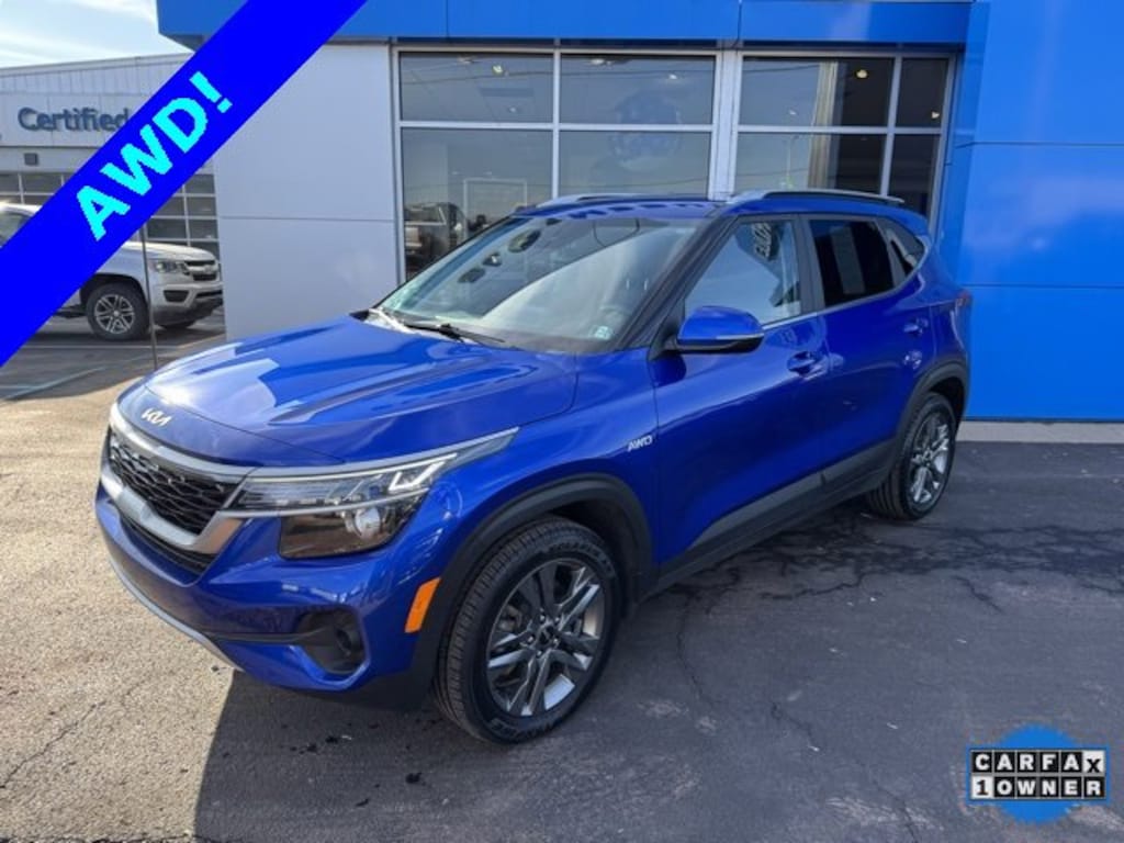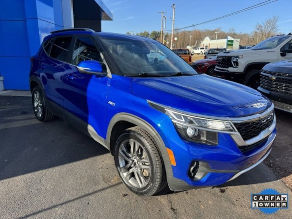 Apple CarPlay & Android Auto, Auto High-beam Headlights, Brake assist, Exterior Parking Camera Rear, Fully automatic headlights, Heated door mirrors, Heated front seats, Remote keyless entry. Odometer is 6259 miles below market average! 27/31 City/Highway MPG 2022 Kia Seltos SCARFAX One-Owner.Get FREE lifetime state inspections when you purchase your vehicle at Chevrolet of Bloomsburg, just pay for the sticker. Every fourth oil change is FREE at Chevy of Bloomsburg! Use your MyChevy rewards for service, parts and accessories.Chevrolet of Bloomsburg is proud to offer this fantastic-looking 2022 Kia Seltos a truly gorgeous SUV with the following Features: Apple CarPlay & Android Auto, Auto High-beam Headlights, Brake assist, Exterior Parking Camera Rear, Fully automatic headlights, Heated door mirrors, Heated front seats, Remote keyless entry, 4-Wheel Disc Brakes, 6 Speakers, 6.052 Axle Ratio, ABS brakes, Air Conditioning, Alloy wheels, AM/FM radio: SiriusXM, Automatic temperature control, Bumpers: body-color, Cargo Tray, Carpeted Floor Mats, Cloth & Sofino Premium Leatherette Seat Trim, Cross Bars, Delay-off headlights, Driver door bin, Driver vanity mirror, Dual front impact airbags, Dual front side impact airbags, Electronic Stability Control, Emergency communication system: 911 Connect, Four wheel independent suspension, Front anti-roll bar, Front Bucket Seats, Front Center Armrest, Front fog lights, Front reading lights, Illuminated entry, Leather Shift Knob, Low tire pressure warning, Mud Guards, Navigation System, Occupant sensing airbag, Outside temperature display, Overhead airbag, Overhead console, Panic alarm, Passenger door bin, Passenger vanity mirror, Power door mirrors, Power steering, Power windows, Radio: AM/FM/MP3 Display Audio w/Navigation, Rear seat center armrest, Rear window defroster, Rear window wiper, Security system, Speed control, Speed-sensing steering, Split folding rear seat, Spoiler, Steering wheel mounted audio controls, Tachometer, Telescoping steering wheel, Tilt steering wheel, Traction control, Trip computer, Turn signal indicator mirrors, Variably intermittent wipers, Wheel Locks, and Wheels: 17 Alloy w/Dark Gray Finish.