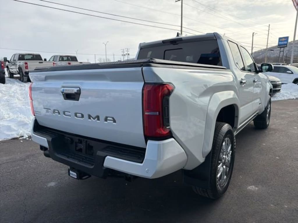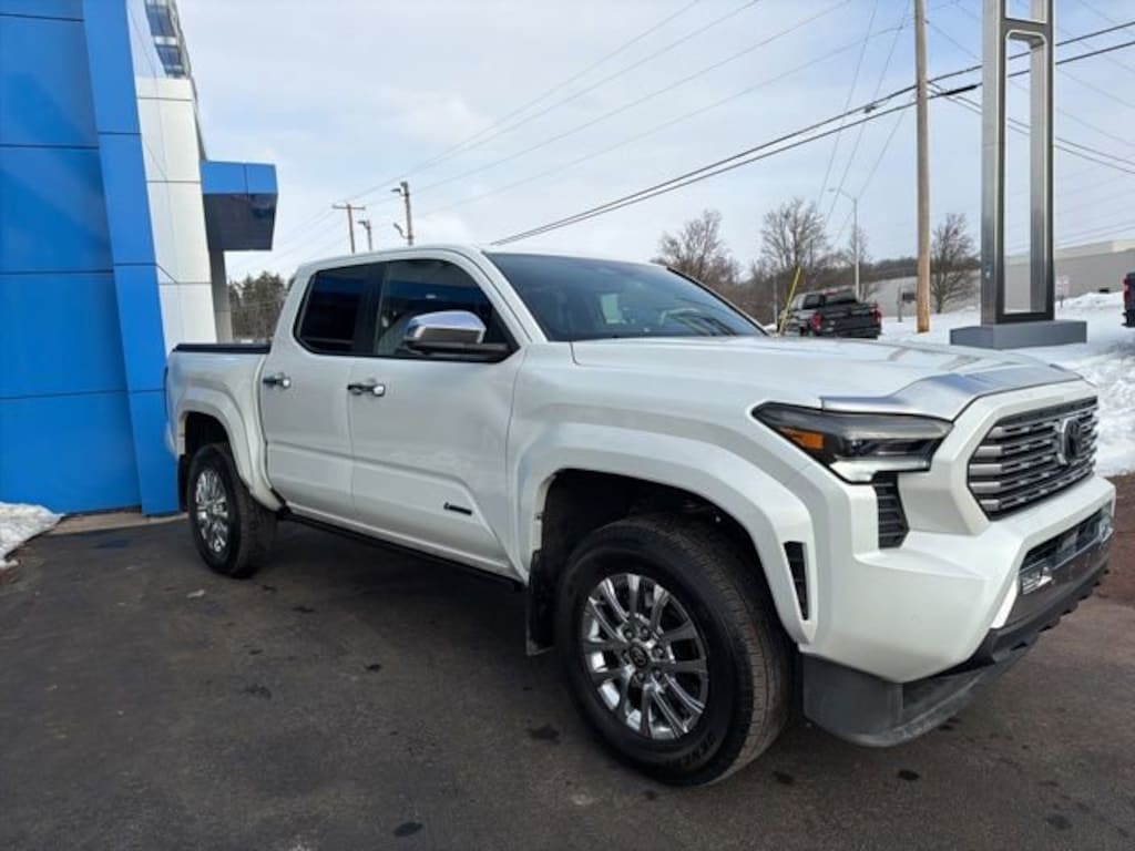 Chevrolet of Bloomsburg is proud to offer this fantastic 2025 Toyota Tacoma a truly terrific Truck with the following Features: ABS brakes, Active Cruise Control, Alloy wheels, Electronic Stability Control, Front dual zone A/C, Heated & Ventilated Front Bucket Seats, Heated door mirrors, Heated front seats, Illuminated entry, Low tire pressure warning, Navigation System, Power moonroof, Remote keyless entry, Traction control, 3.583 Axle Ratio, 4-Wheel Disc Brakes, 9 Speakers, Air Conditioning, AM/FM radio: SiriusXM, Anti-whiplash front head restraints, Apple CarPlay/Android Auto, Auto High-beam Headlights, Auto-dimming Rear-View mirror, Automatic temperature control, Brake assist, Bumpers: body-color, Chrome wheels, Driver door bin, Driver vanity mirror, Dual front impact airbags, Dual front side impact airbags, Emergency communication system: Safety Connect (1-year trial), Exterior Parking Camera Rear, Four wheel independent suspension, Front anti-roll bar, Front Bucket Seats, Front Center Armrest, Front fog lights, Front reading lights, Fully automatic headlights, Garage door transmitter: HomeLink, Heads-Up Display, Heated steering wheel, JBL Premium Audio, Knee airbag, Leather Shift Knob, Leather steering wheel, Navigation system: Drive Connect (1 year trial) includes Cloud Navigation with real time traffic and Google POI, Occupant sensing airbag, Outside temperature display, Overhead airbag, Overhead console, Panic alarm, Passenger door bin, Passenger vanity mirror, Power door mirrors, Power driver seat, Power passenger seat, Power steering, Power windows, Radio: 14 Toyota Audio Multimedia, Rear step bumper, Rear window defroster, Security system, SofTex Seat Trim, Speed control, Speed-sensing steering, Split folding rear seat, Steering wheel mounted audio controls, Tachometer, Telescoping steering wheel, Tilt steering wheel, Trip computer, Turn signal indicator mirrors, Variably intermittent wipers, Ventilated front seats, and Wheels: 18 Chrome-Finished Alloy.